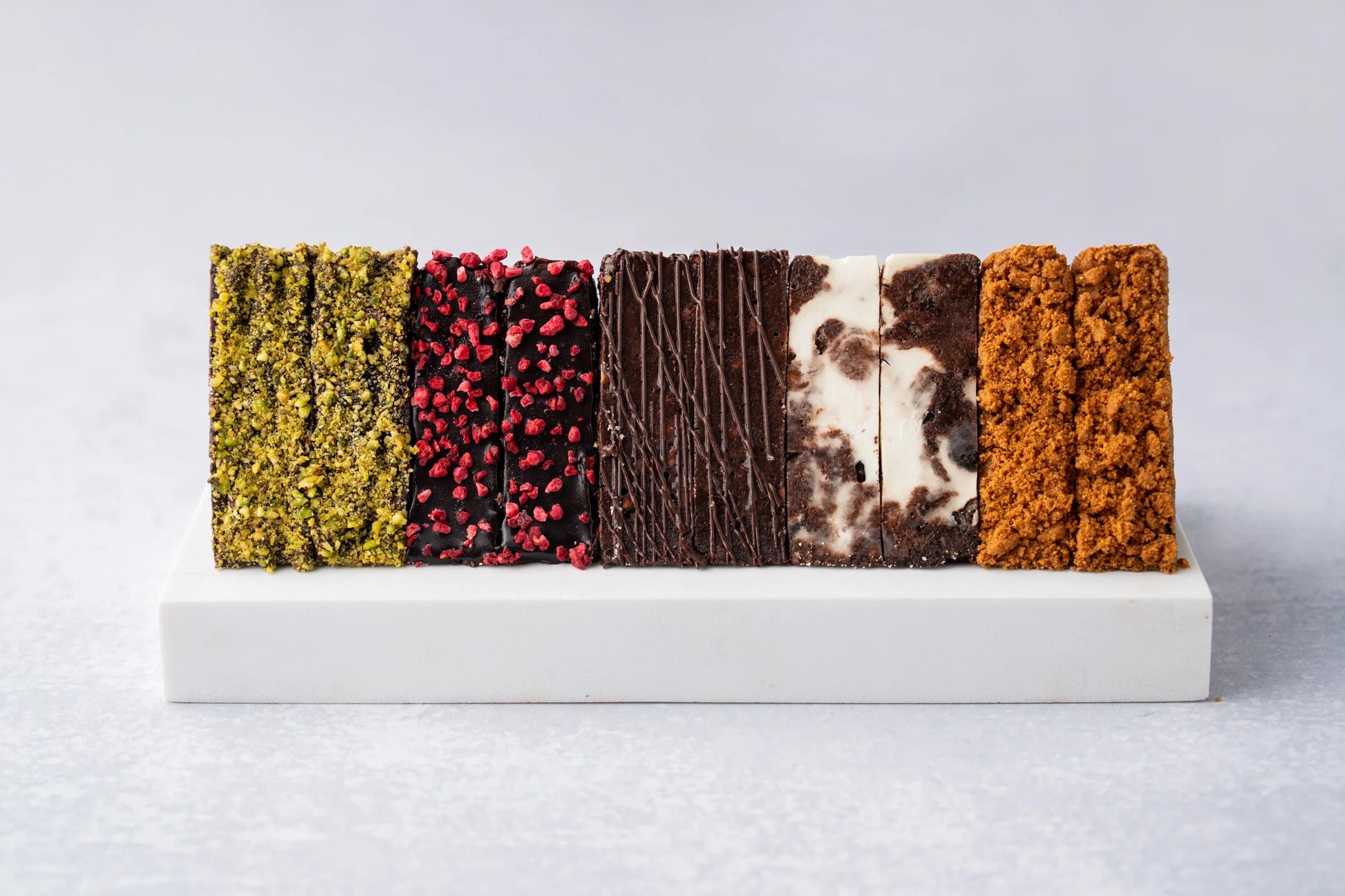 Are you interested in Mosaic Cakes but haven't tried the cakes yet? Are you looking to explore and discover new flavors? Our Variety Pack gives you a chance to sample many of the delicious Mosaic Cakes flavors! Each variety pack contains 10 slices, with 2 slices each randomly selected from the following flavors: double chocolate, pistachio, raspberry, white chocolate, carrot, biscoff, hazelnut cream, oreo, dubai chocolate, & salted caramel!